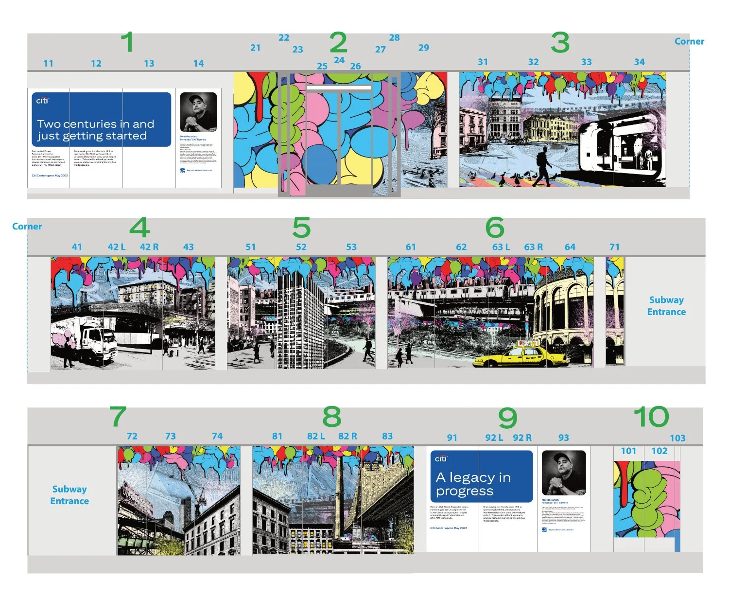Workied closely with street artist, Fernando “Ski” Romero, art directors, retouchers, print vendors, and installers to develop custom window wraps compositing hand-drawn art and archival photos to create a compelling visual highlighting Citi’s long history in New York.