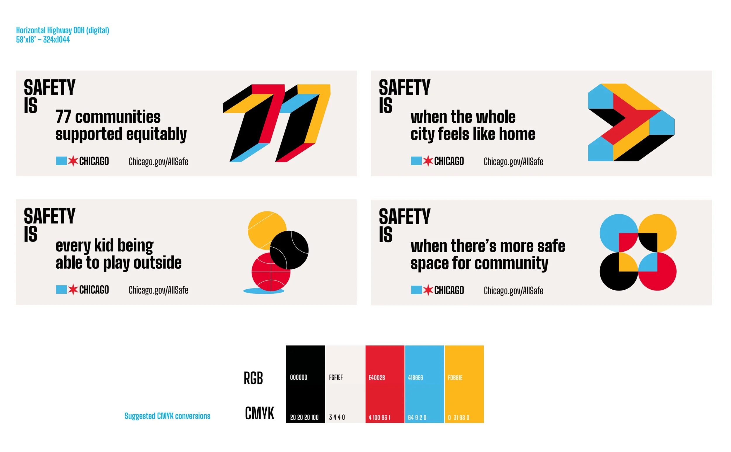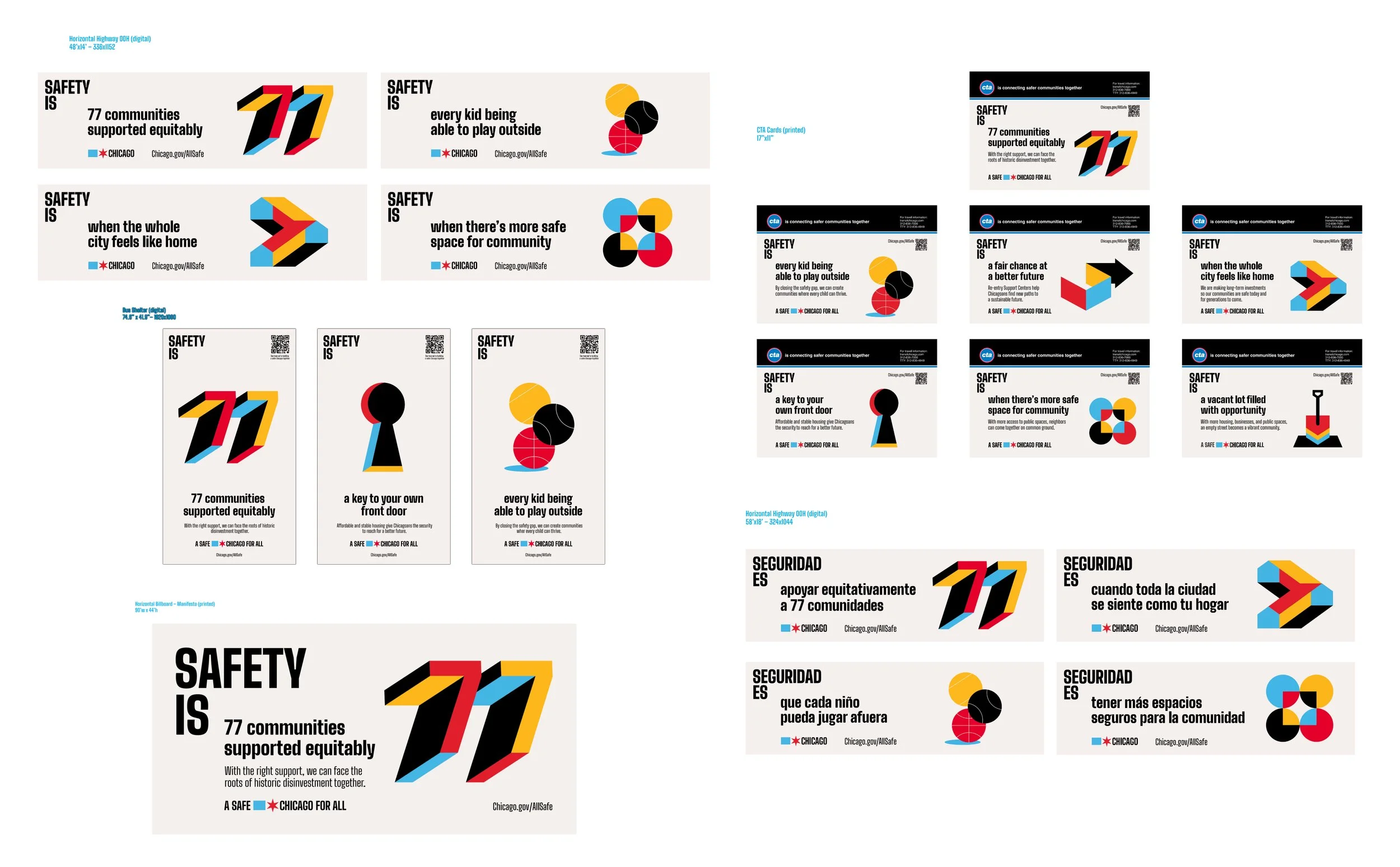 Safety program versioned out from initial banners to outdoor billboards, bus stop posters, mass transit signage, and event backdrops.